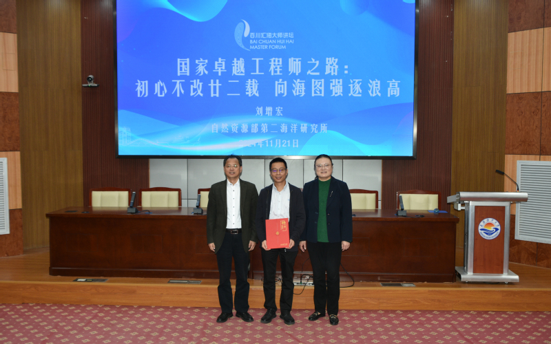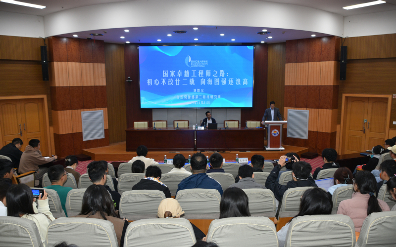 为深入学习贯彻习近平总书记给中国海洋大学全体师生回信精神,由永利yl23411员工工作部(员工处)主办、永利yl23411承办的第二十六期百川汇海大师讲坛11月21日在行政楼137会议室举行。2024年“国家卓越工程师”称号获得者、自然资源部第二海洋研究所正高级工程师刘增宏莅临本期讲坛,以“国家卓越工程师之路:初心不改廿二载 向海图强逐浪高”为题开讲。公司党委常委、宣传部部长陈江华,公司党委书记施永忠出席,与公司师生代表共同聆听报告。会议由公司党委委员、常务副经理高郭平主持。