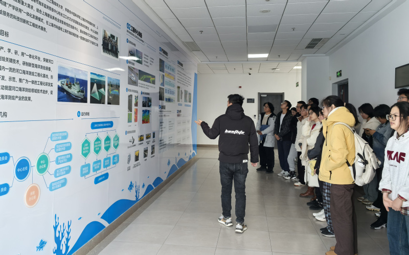 党员韩玉莉以“我与海洋科学都还年轻”为题介绍海洋科研领域的先锋人物——丁巍伟。她通过讲述海洋科学一线科研人员的故事,激励新生在浩瀚海洋中怀揣梦想、勇于探索、积极创新。她还介绍了海洋技术方向的研究生导师,结合导师的研究方向介绍海洋测绘、海洋遥感、激光雷达、数据处理等方面的专业知识,帮助新生理解海洋技术方向的学术研究和实际应用。党员王飘带领新生参观上海河口海洋测绘工程技术研究中心。中心配备7000米多波束系统、船载卫星遥感系统、ADCP等先进设备以及高性能计算机集群,拥有先进的测绘技术、新型测绘装备,以及基于单光子探测技术的潮间带测绘激光雷达系统等创新成果。新生参观了无人机、水下机器人、激光车、无人船等设备。