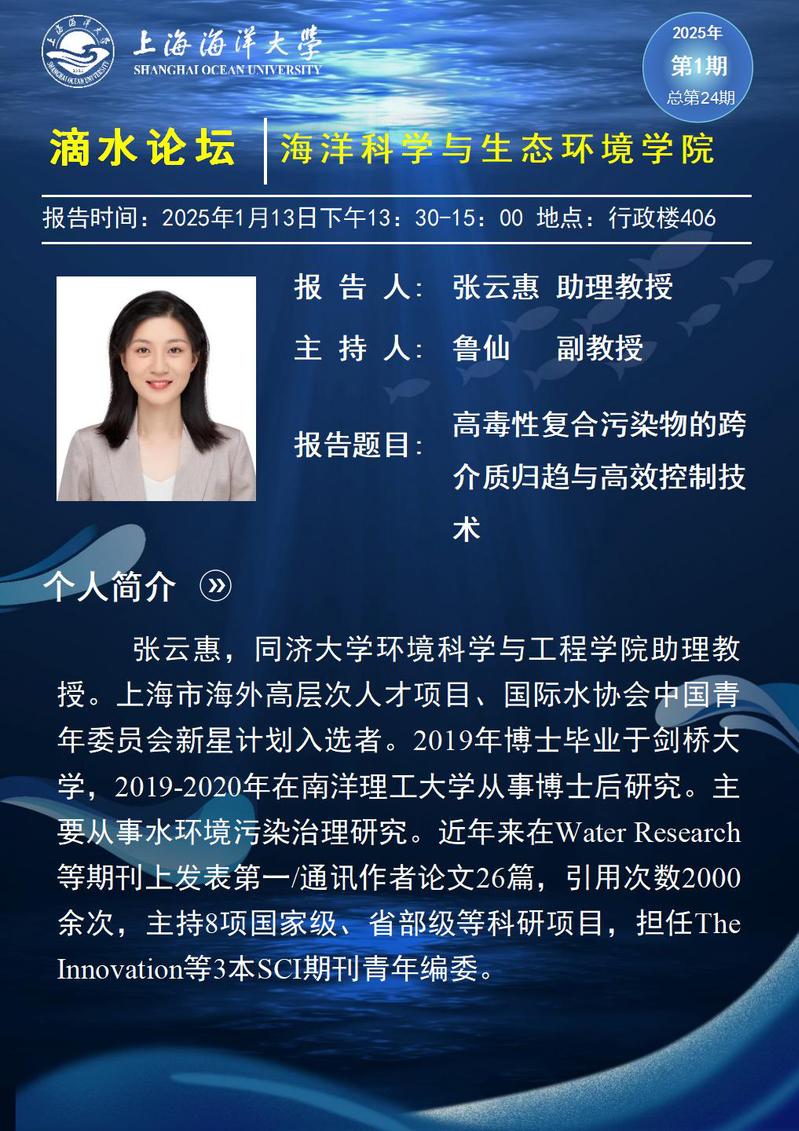 【讲座预告】高毒性复合污染物的跨介质归趋与高效控制技术