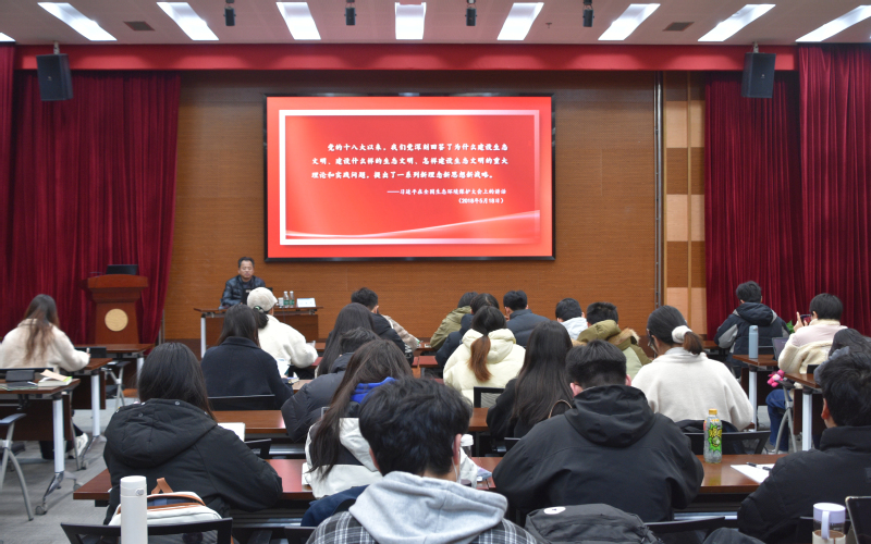 施永忠从国内外触目惊心的生态环境破坏案例开篇,以“十个坚持”为核心框架,以生动语言系统阐释习近平生态文明思想的理论体系,以鲜活案例深刻阐述习近平生态文明思想的科学内涵和理论精髓,内容涵盖党对生态文明的领导、生态文明的辩证关系、“绿水青山就是金山银山”的方法论创新、习近平生态文明思想形成发展和新时代生态文明建设成效。他总结了公司师生在生态环境领域作出的努力和取得的成果,希望员工党员们充分认识到生态文明建设的重要性,带动周围同学认真学习党的理论知识,将党的创新理论转化为推进生态文明建设的强大动能。