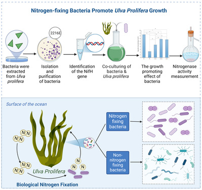 近年来,绿潮等有害藻华(Harmful Algal Blooms,HABs)事件在全球范围内频繁暴发。自2007年起我国黄海绿潮灾害连年发生,被认为是世界上规模最大的绿潮灾害。浒苔(Ulva prolifera)是黄海绿潮优势种,解析绿潮浒苔快速增殖复杂机制是近海生态学的关键科学问题,然而,关于浒苔共附生固氮菌对于绿潮贡献作用尚不十分清楚。