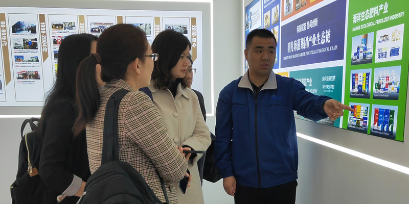 调研期间,考察团先后走访调研了江苏明月海洋生物科技有限公司、江苏铭治生物科技有限公司、江苏东尚诚品有限责任公司等企业,围绕海洋产业技术创新、滨海湿地保护与修复等内容进行交流探讨。明月海洋公司是国内知名的褐藻加工企业。考察团参观了企业产品展示馆,针对褐藻加工工艺、环境保护等与企业进行深入交流,在拓展藻源和产品方面提出建议方案。在铭治生物公司,考察团参观了企业高端虾料、河蟹饲料等产品生产线,了解企业从苗种、饲料、动保产品研发到流通的全产业链服务,针对海藻生物饲料开发进行答疑。东尚诚品公司十多年来主打条斑紫菜新产品研发与加工出口。考察团观摩了企业新建的产品流水线,对紫菜类新产品研发与市场拓展展开深入交流,并就校企合作进行初步探讨。