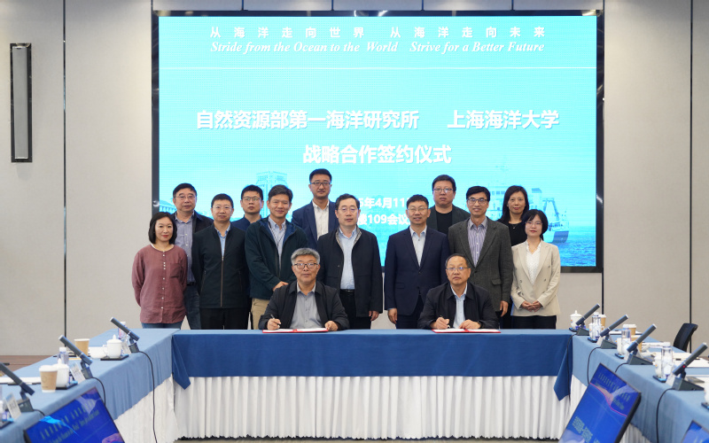 为贯彻落实新发展理念,服务海洋强国建设,促进科教融合和发展海洋新质生产力,永利yl23411(简称海大)与自然资源部第一海洋研究所(简称海洋一所)于4月11日在临港校区举行战略合作协议签约仪式。海洋一所所长李铁刚与海大董事长万荣代表双方签约。会议由海大副董事长罗轶主持。