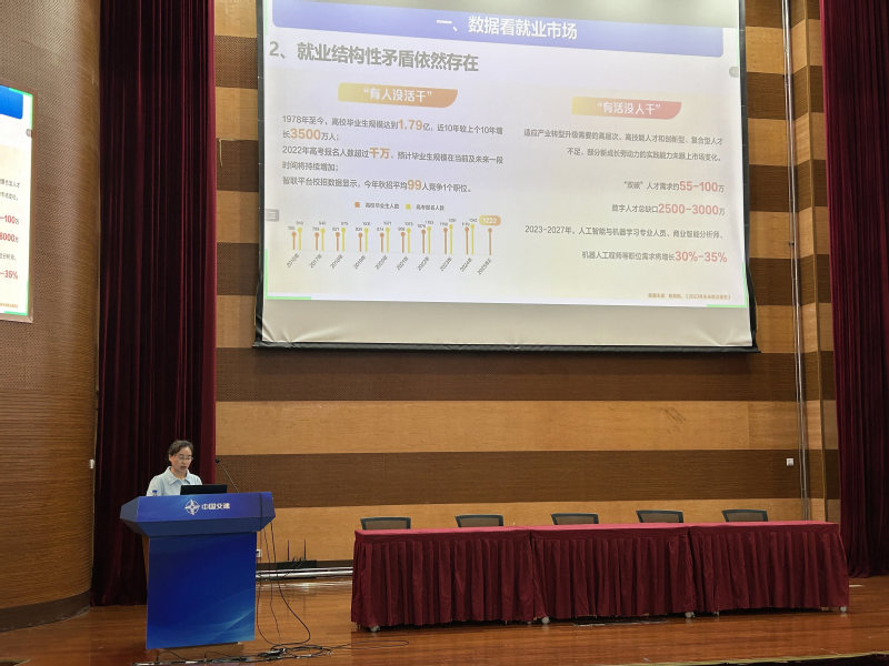 闫咏对当前就业形势进行了深入分析,并详细介绍了最新的就业政策。她结合宏观经济环境、行业发展趋势以及就业市场数据,指出了当前就业面临的机遇与挑战,同时对国家和地方出台的就业扶持政策进行了细致解读,鼓励毕业生积极把握政策红利,拓宽就业思路。