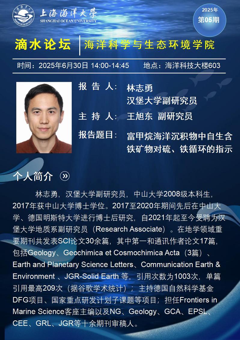 【讲座预告】富甲烷海洋沉积物中自生含铁矿物对硫、铁循环的指示