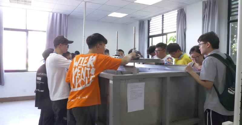 图2本科生在海洋声学实验室水槽中做水声学实验