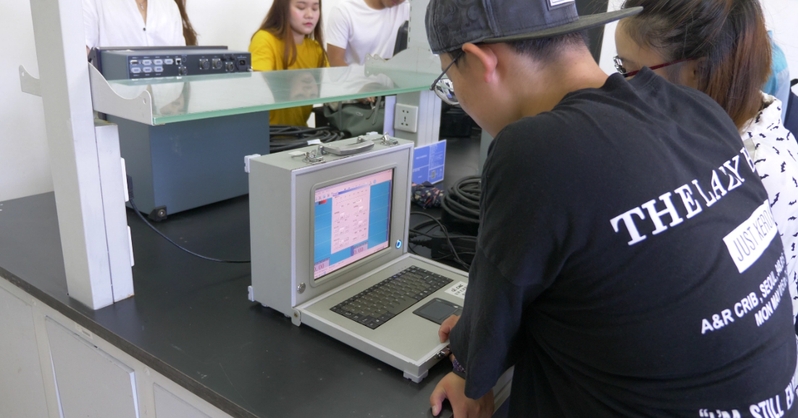 图1:本科生进行单波束测深仪操作与数据处理实验