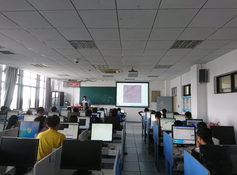 遥感与GIS专业机房为教学型实验室,房间面积为128㎡,位于公共实验楼A405室,主要仪器设备包括高性能计算机70台、服务器1台和投影仪1台,可容纳70名员工同时使用。